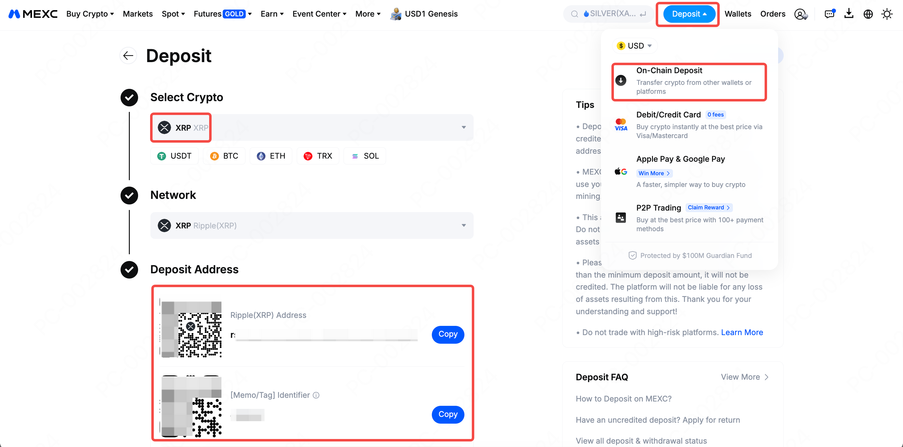 2) ネットワークの一致:入金ネットワークを選択する際は、外部プラットフォームやウォレット側の出金ネットワークが、MEXCの入金ネットワークと一致している必要があります。ネットワークが一致しない場合、資産が失われる可能性があります。