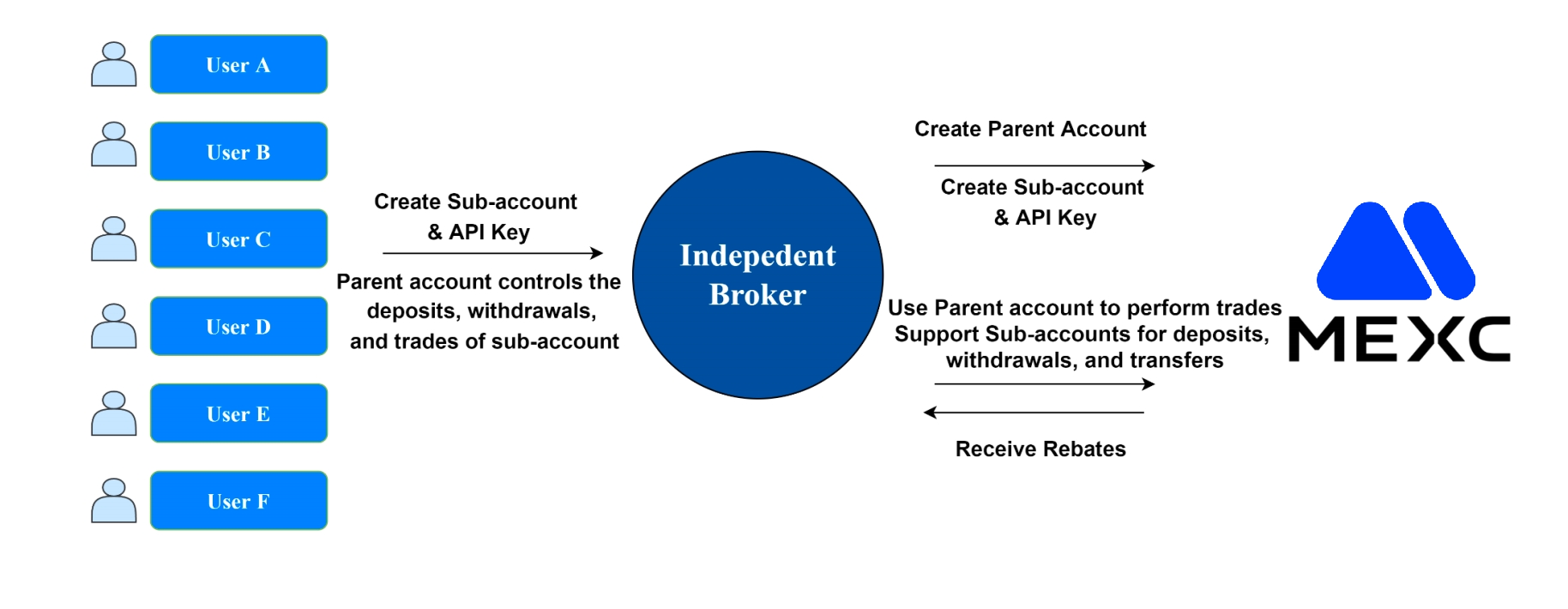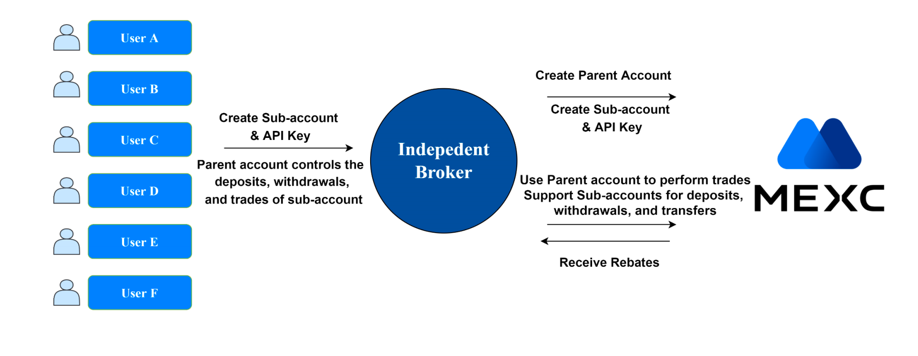 经纪商在MEXC母账号下为用户创建独立子账号进行交易