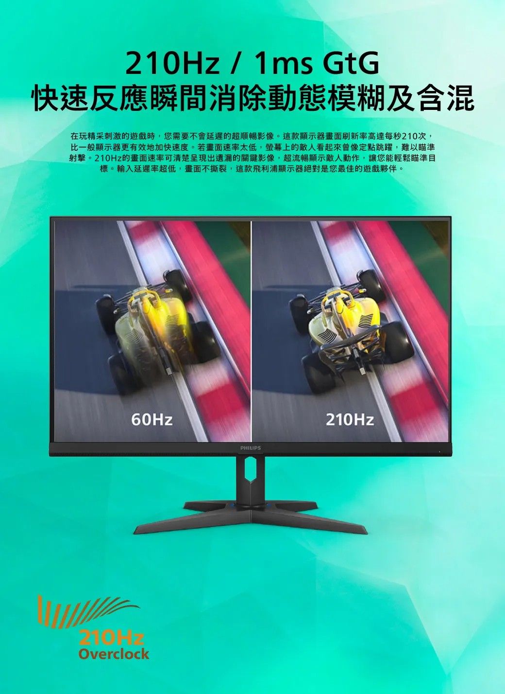 飛利浦這款螢幕的規格算是主流的電競螢幕,但在螢幕更新率方面提升到210Hz是較為高標準的表現,也是這產品最大的賣點。其餘規格方面,27吋2K解析度是常見的中價位電競螢幕配置,1ms反應時間也是這等級電競螢幕的標準配備。