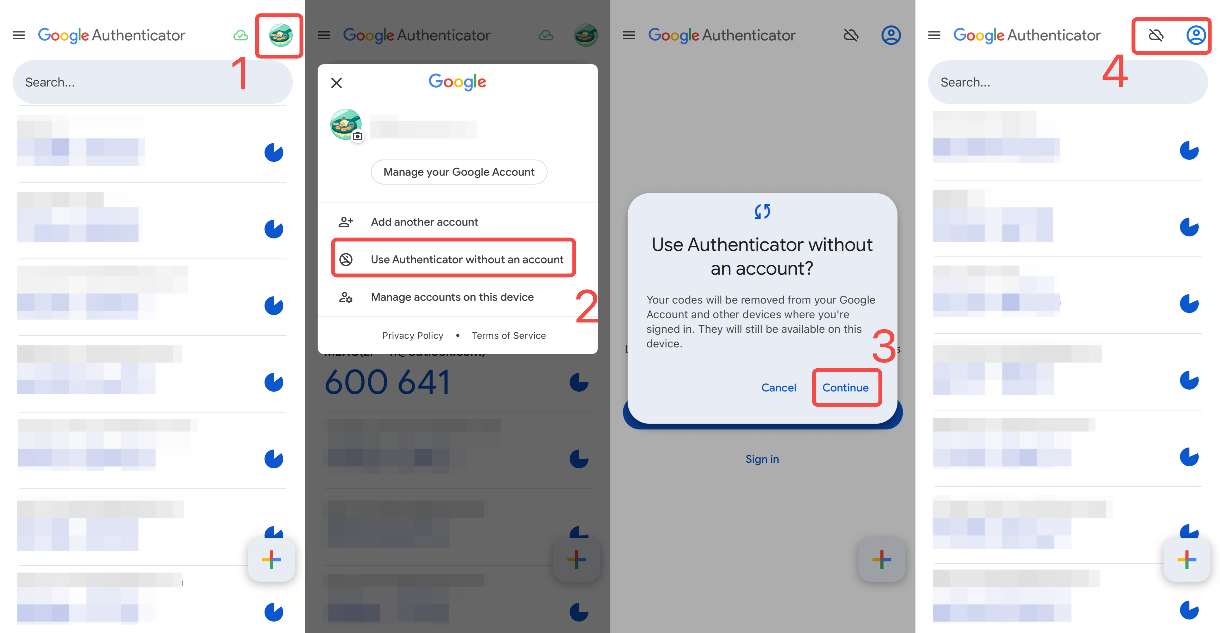 4)您的谷歌驗證器將退出谷歌帳號登入狀態,雲端同步功能隨即關閉。此後,所有驗證碼數據將僅保存在您的手機本地。